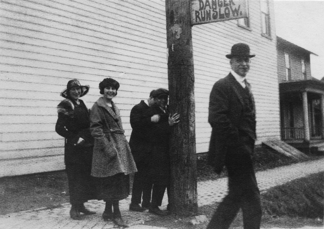Gretchen Williams, Date Wolf , ?? and Sumner Wolf next to Wolf's Store - 1920 or 1930!