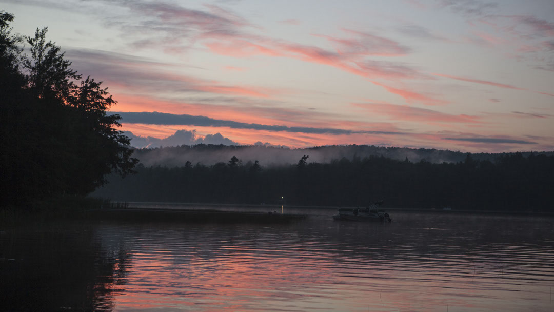 Sunset on Big Moose Lake - Party Boat after a day of Family Celebration - July 2013